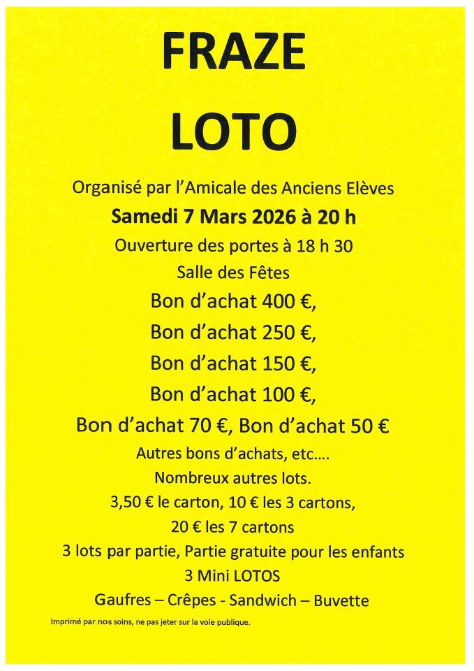Loto Amicale des Anciens Elèves de Frazé : 07/03/2026